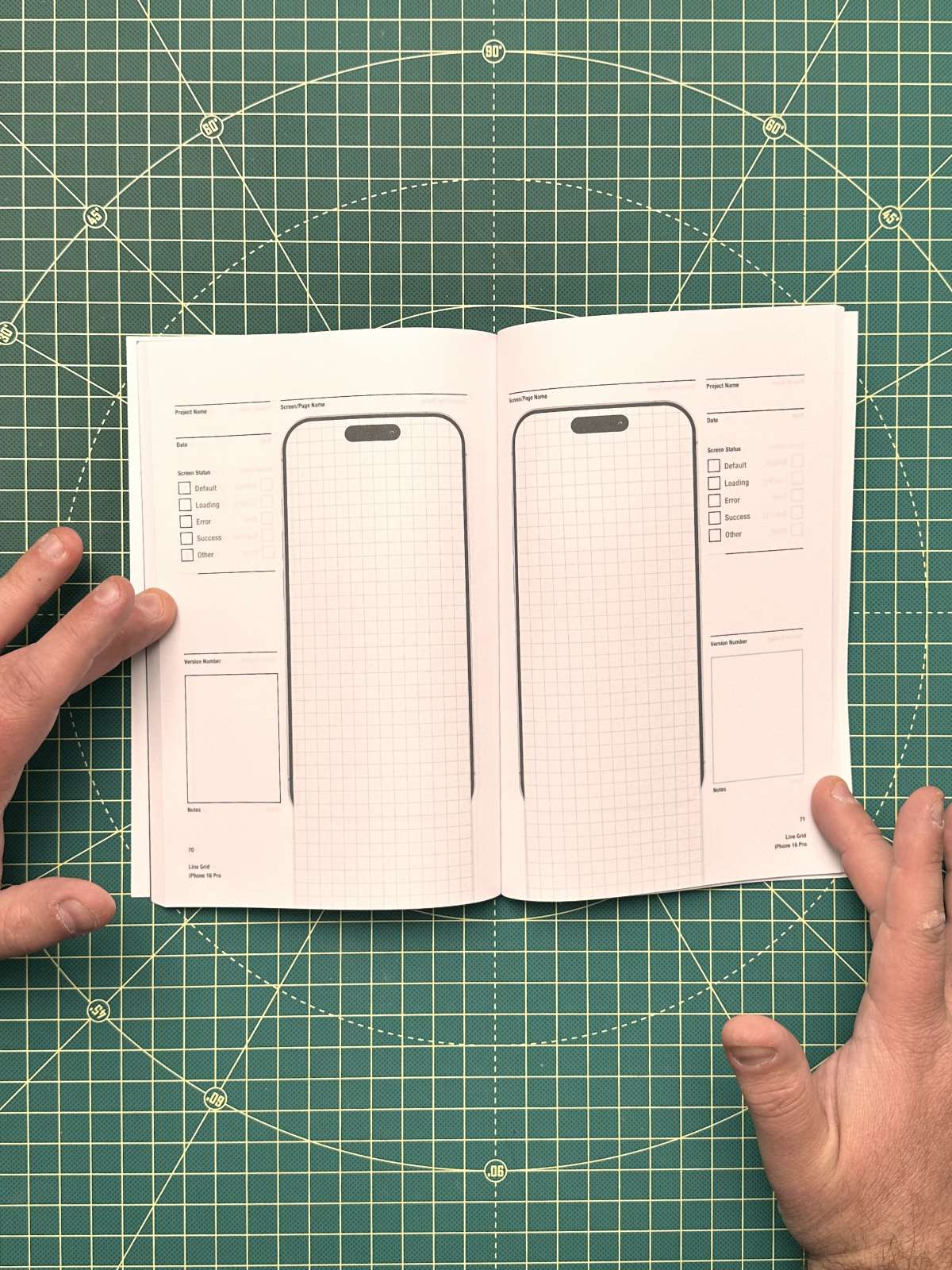 Each page includes a to-scale iPhone 16 Pro / Pro Max screen outline, paired with subtle line guides to keep your sketches readable, balanced, and intentional. Ideal for designers who like their chaos neatly spaced. Look for some great stencils at the IfIDesignedIt brand.